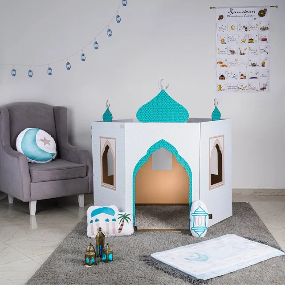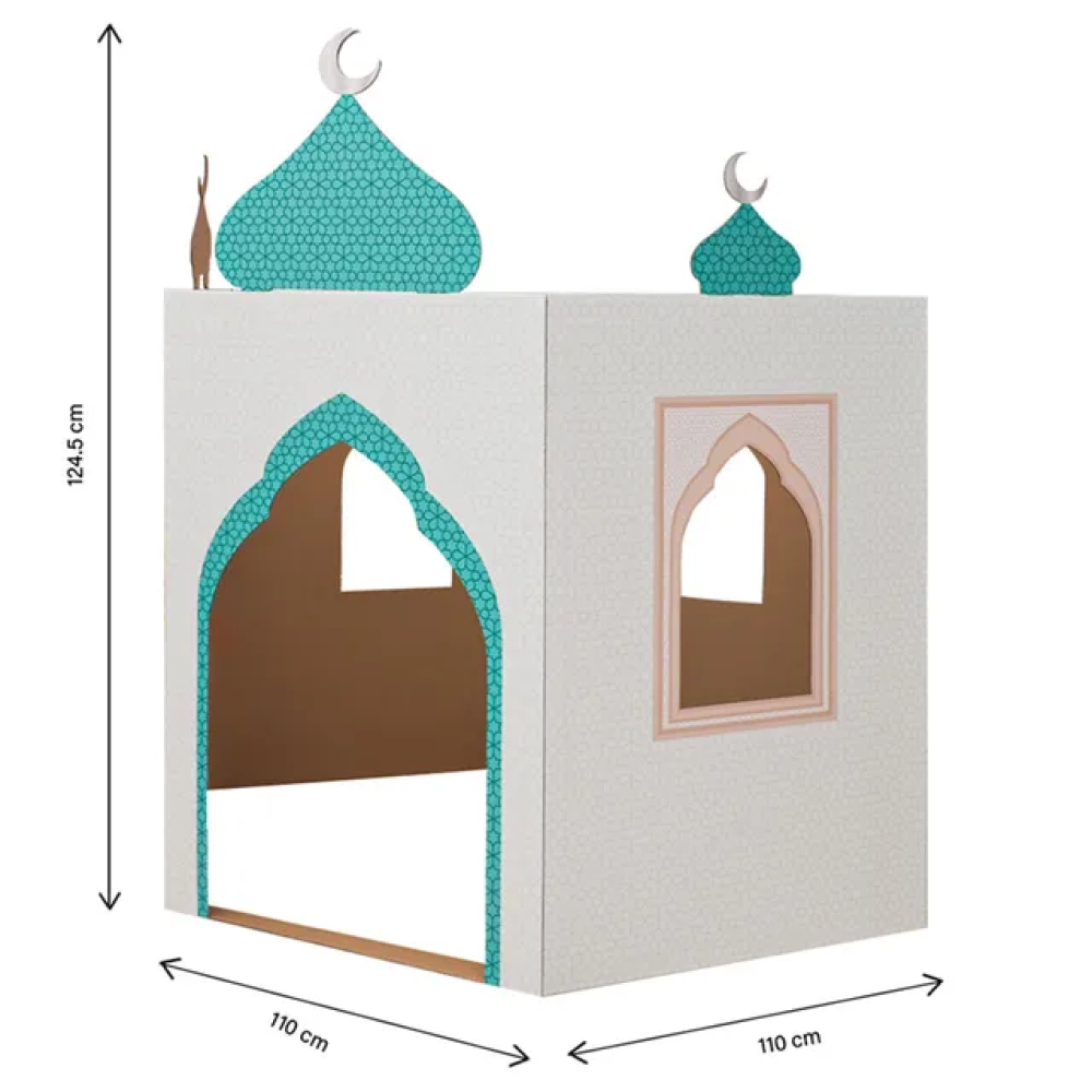 هلالفُل - مجسم مسجد كرتوني ثلاثي الأبعاد - أبيض وأزرق